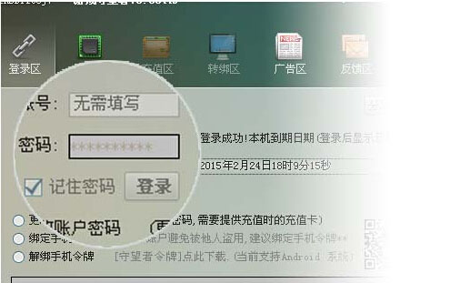 输入密码登录输入充值时设置的用户密码,点击"登录"按钮登录软件.登录成功,右侧则及时显示用户信息.
