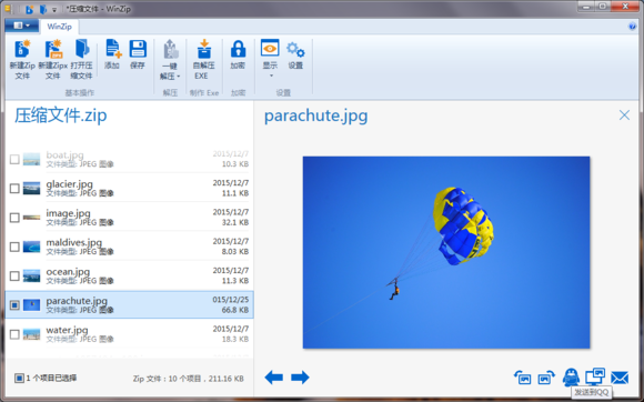方式二:在WinZip中选择需要分享的文件,然后右键> 发送所选文件到>发送给QQ好友。