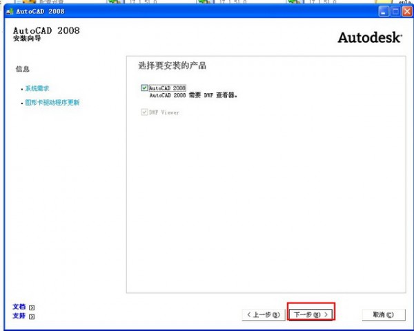 勾选“auto CAD 2008”点击“下一步”继续;