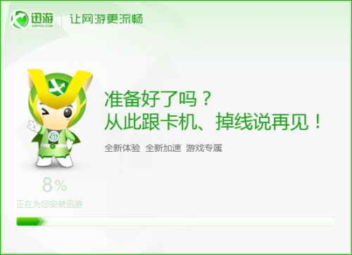 3、迅游网游加速器正在安装当中,请耐心等候,下载完毕之后会自动为我们打开它。
