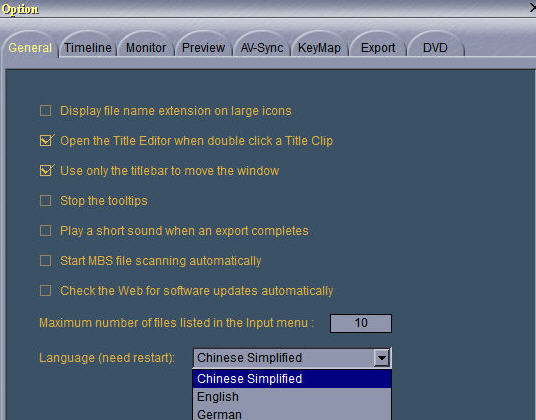 安装软件之后打开进入主界面,按下F10打开设置界面,选择General选项卡,然后在设定语言(Language)时选择Chinese Simplified(简体中文)即可。