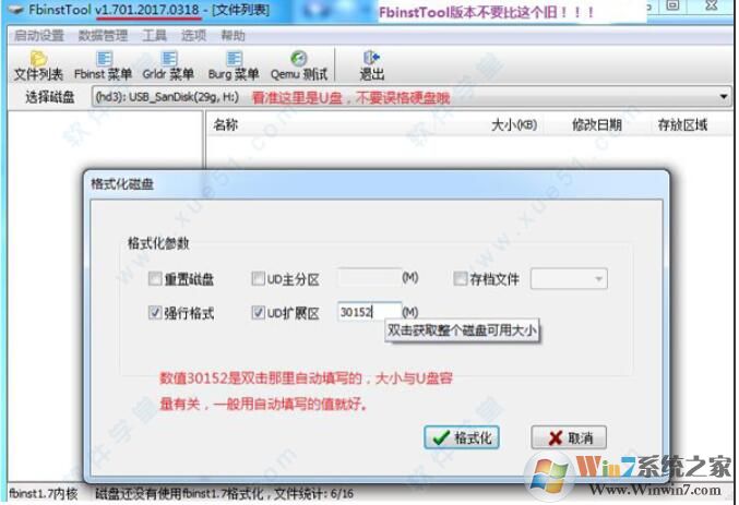1、用FbinstTool格U盘弄出ud扩展区