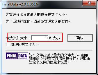 5、为了系统的优化,这里需要用户设置管理文件的大小,以方便文件信息的保存,如图所示: