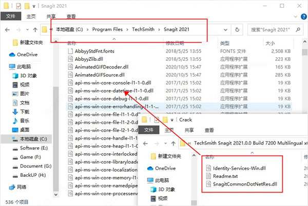 1、在本站下载解压,得到techsmith snagit 2021原程序和crack破解版文件夹;