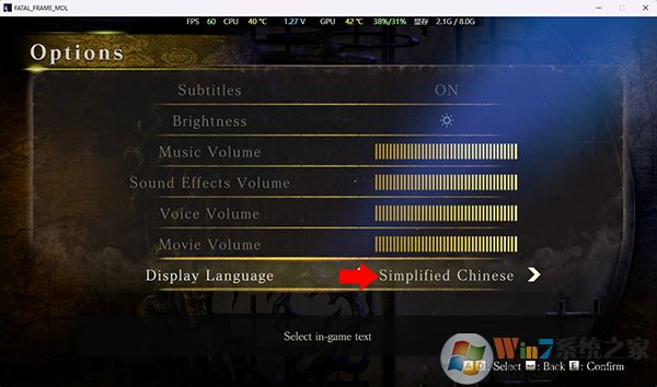 5、接着将Display Language选项改为Simplified Chinese,并按下E键保存设定,之后等待游戏重新加载后就是简体中文了