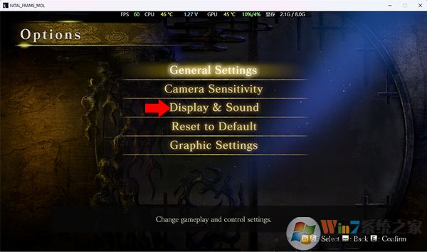 4、来到设置界面后移动至Display&Sound选项,并按下E键