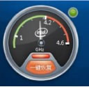 点击一键超频按钮,执行 CPU 超频操作,超频成功后,灰色部分会变成橙色,表示 CPU能到达新增的频率范围。如下面图中所示,CPU 一键超频后频率指针可以从 4.2G Hz 摆动到4.5G Hz。点击一键恢复按钮,CPU 会恢复到超频前状态。