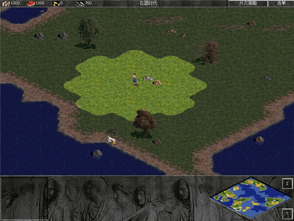 6、进入游戏,鼠标点击农民即可建造市政厅,以培养更多人口
