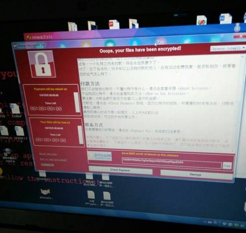 该勒索病毒是一个名称为“WannaCry”的新家族,利用此前泄漏的方程式工具包中的“永恒之蓝”漏洞工具,进行网络端口扫描攻击。目标机器被成功攻陷后,会从攻击机下载“WannaCry”勒索病毒进行感染,并作为攻击机再次扫描互联网和局域网其他机器,形成蠕虫感染从而大范围超快速扩散。