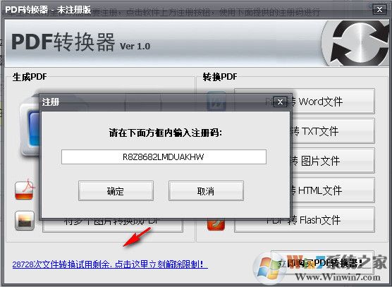 2、点击立即注册pdf转换器,输入上方本站提供的注册码,点击注册