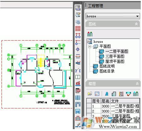 系统允许用户使用一个DWG文件保存多个楼层平面,也可以每个楼层平面分别保存一个DWG文件,甚至可以两者混合使用。