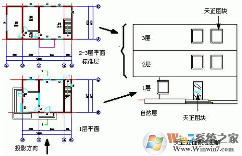 天正建筑随时可以从各层平面图获得三维信息,按楼层表组合,消隐生成立面图与剖面图,生成步骤得到简化,成图质量明显提高。