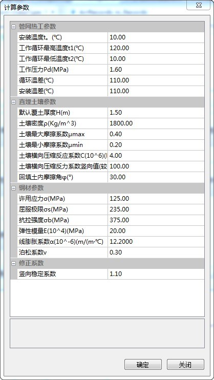 支持壁厚验算,管道应力计算,弯头应力计算,固定墩推力计算,伸长量计算,稳定性校核等目前直埋供热管道工程技术规程所要求的所有计算。 计算严格按照最新版规程《城镇供热直埋热水管道技术规程》(CJJ/T 81-2013)进行,计算精确,结果可靠