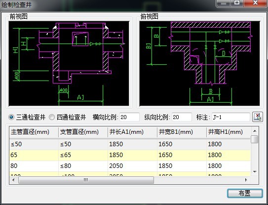 绘制三通或四通的检查井大样图。