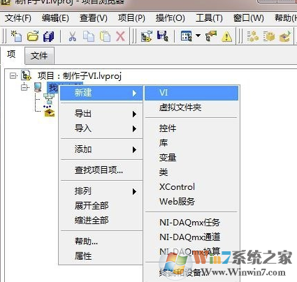 4、从项目文件中选择-我的电脑-右击新建-VI,并命名Add.vi;