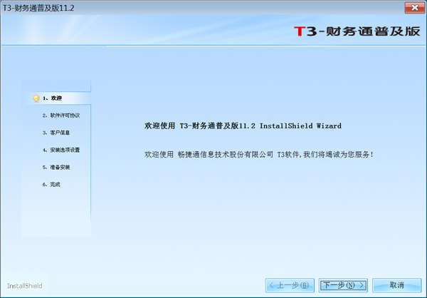 4、之后弹出用友T3软件安装向导,点击下一步