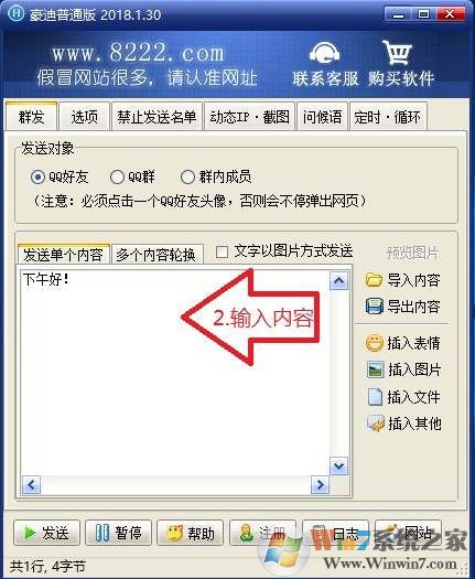 第2步:输入需要发送的消息内容,也可以粘贴或者从文本文件导入。