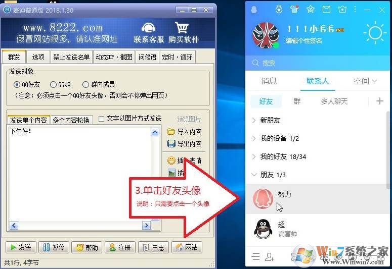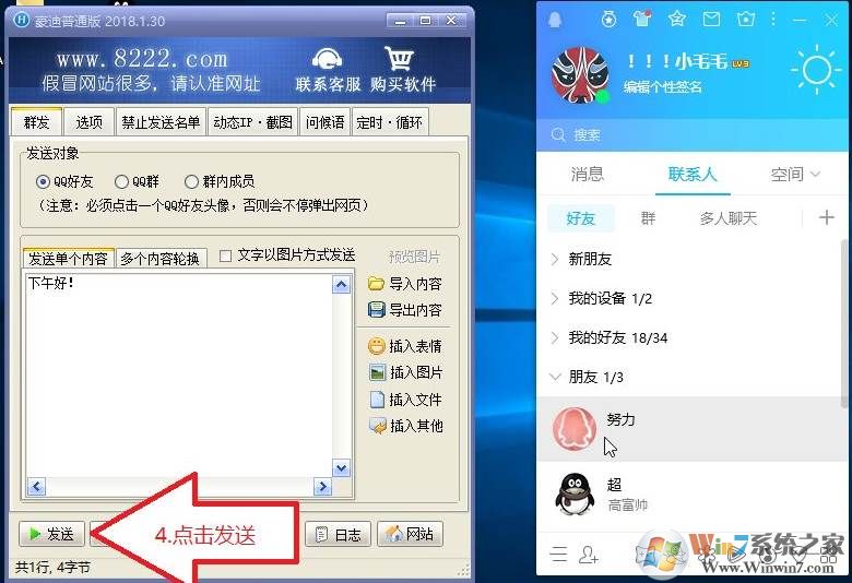 第1步:豪迪群发软件上发送对象选“QQ好友”