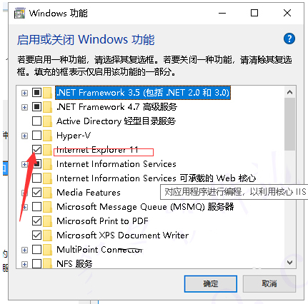 4、选择Internet EXPLORE11选项框,取消勾选。