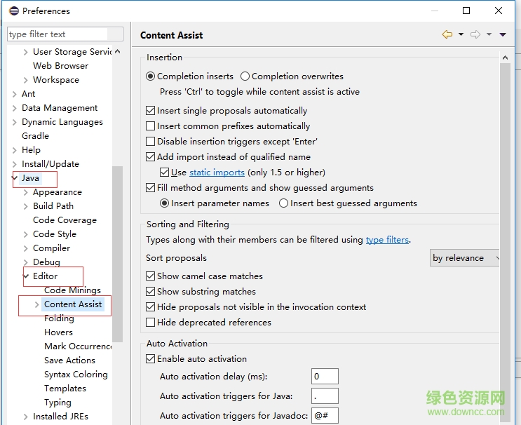 8.在选择java->Editor->Content Assist