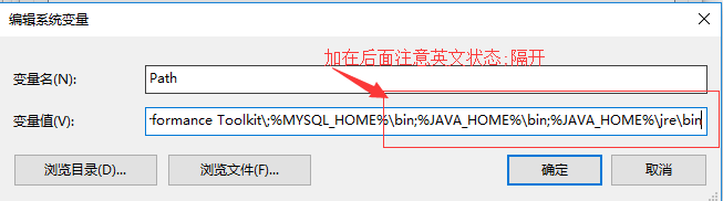 14.然后在后面加 ;JAVA_HOME%\bin;%JAVA_HOME%\jre\bin 注意;号隔开,不然没效果的,然后点击确定