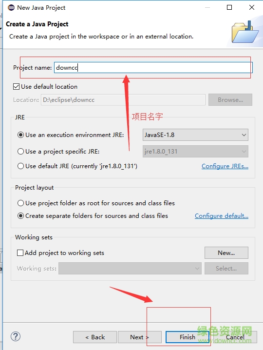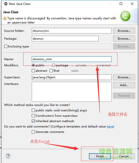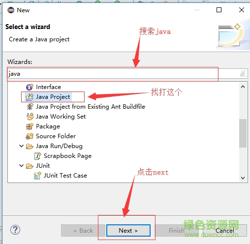 7.会出现一个创建java文件项目,输入文件名downcc_com