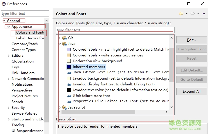4.找到General->Appearance->Colors and Fonts 再看右侧框就能看到字体和颜色
