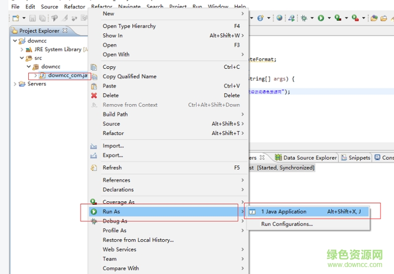 10.然后在downcc_com右键点击run as->java Application