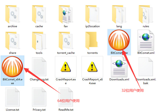 2.压缩包含32位系统和64位系统,32位系统直接双击BitComet.exe、64位系统双击BitComet_x64.exe即可。