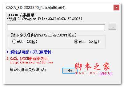 然后安装完成之后我们以管理员身份运行该破解补丁选择安装的版本(32位或64位,再选择caxacad2023的安装目录打补丁即可;