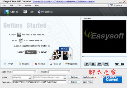 4Easysoft Free MP4 to MP3 Converter是一款出色的转换器,旨在以简单快捷的方式将MP4转换为各种音频格式。然后你可以在便携式mp3播放器上欣赏美妙的音乐。这个免费的MP4到MP3转换器还可以帮助您将输出剪辑合并到一个文件中。这样你就可以连续欣赏你最喜欢的音乐。当您预览转换后的剪辑时,您可以随意拍摄美丽的图像。