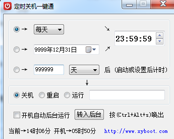自动开关机。在播放完一天的铃声后可以由本软件控制自动关闭计算机(计算机需配备ATX电源);配合主板,可以实现定时启动计算机。